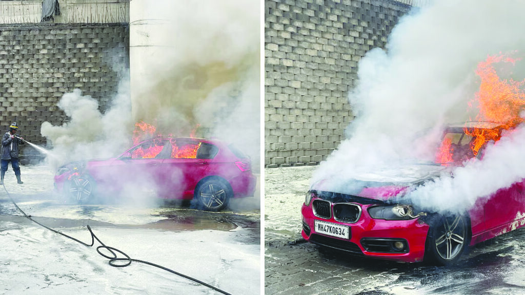 ठाणे में बीएमडब्ल्यू कार में अचानक लगी आग