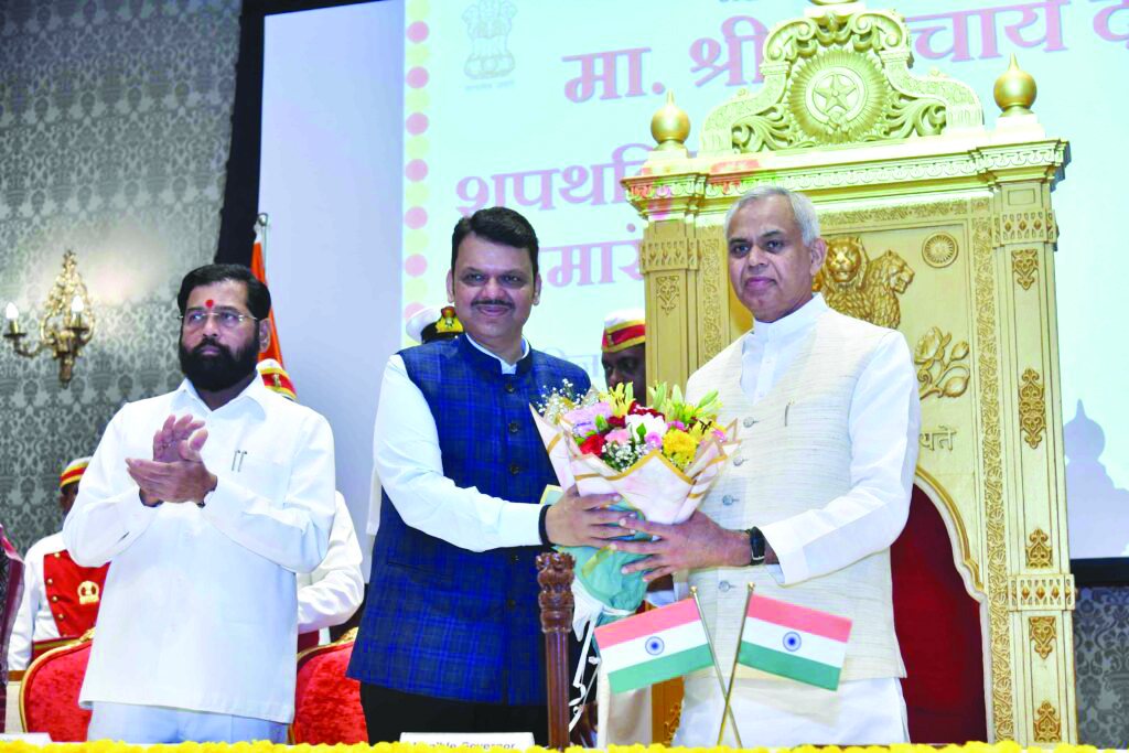 मुंबई। गुजरात के राज्यपाल आचार्य देवव्रत ने सोमवार को महाराष्ट्र के राज्यपाल पद की शपथ ली। राजभवन के दरबार हॉल में आयोजित शपथ ग्रहण समारोह में बॉम्बे उच्च न्यायालय के मुख्य न्यायाधीश श्री चंद्रशेखर ने उन्हें पद और गोपनीयता की शपथ दिलाई। आचार्य देवव्रत ने यह शपथ संस्कृत में ली। समारोह के बाद मुख्यमंत्री देवेंद्र फडणवीस और उपमुख्यमंत्री एकनाथ शिंदे ने राज्यपाल को गुलदस्ता भेंट कर बधाई दी। आचार्य देवव्रत महाराष्ट्र के 22वें राज्यपाल बने हैं। इस अवसर पर विधान परिषद के सभापति प्रो. राम शिंदे, विधानसभा अध्यक्ष एडवोकेट राहुल नार्वेकर, विधान परिषद की उपसभापति डॉ. नीलम गोरहे, मंत्री मंगल प्रभात लोढ़ा, मंत्री बाबासाहेब पाटिल, मंत्री एडवोकेट माणिकराव कोकाटे, मुख्य सचिव राजेश कुमार और अतिरिक्त मुख्य सचिव (प्रोटोकॉल) मनीषा म्हैसकर समेत अन्य वरिष्ठ अधिकारी उपस्थित थे। कार्यक्रम की शुरुआत राष्ट्रगान के साथ हुई। इसके बाद मुख्य सचिव राजेश कुमार ने राष्ट्रपति द्रौपदी मुर्मू द्वारा जारी नियुक्ति की अधिसूचना पढ़कर सुनाई। समारोह का समापन भी राष्ट्रगान के साथ हुआ। शपथ ग्रहण के बाद भारतीय नौसेना द्वारा राज्यपाल को गार्ड ऑफ ऑनर दिया गया। उल्लेखनीय है कि गुजरात के राज्यपाल आचार्य देवव्रत को महाराष्ट्र का अतिरिक्त कार्यभार सौंपा गया है।
