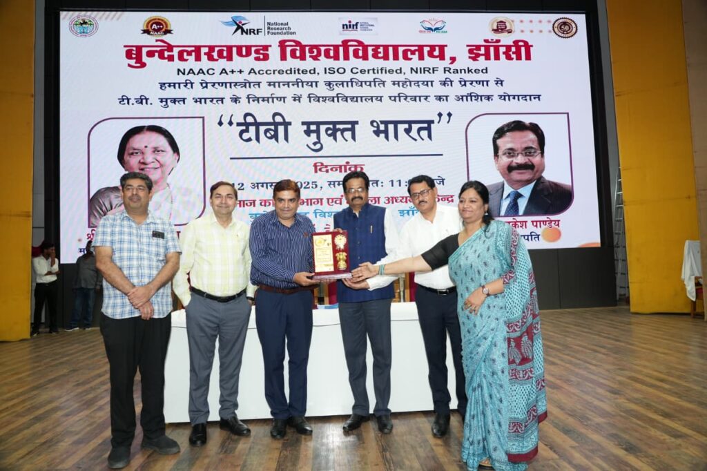 झांसी, उत्तर प्रदेश। बुन्देलखण्ड विश्वविद्यालय झांसी के समाज कार्य विभाग और महिला अध्ययन केंद्र के संयुक्त तत्वावधान में मंगलवार को टी.बी मुक्त भारत अभियान के अंतर्गत 100 क्षय रोगियों को गोद लेकर उन्हें पोष्टिक सामग्री प्रदान करने और नौ माह तक स्वास्थ्य मूल्यांकन तथा पोषण सहायता देने का संकल्प लिया गया। इस कार्यक्रम में विश्वविद्यालय के अधिकारी, शिक्षक एवं कर्मचारी सक्रिय रूप से शामिल हुए।