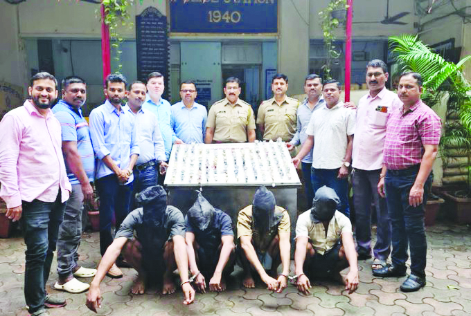 मुंबई। अंधेरी पुलिस ने चोरी की बड़ी वारदात को अंजाम देने वाले चार चोरों के गिरोह को गिरफ्तार कर लिया है। पुलिस ने इनके पास से 150 से अधिक महंगी घड़ियाँ, 10 मोबाइल फोन और नकदी बरामद की है। जानकारी के अनुसार, 7 सितंबर को अंधेरी ईस्ट स्थित एक मोबाइल और ब्रांडेड घड़ियों की दुकान में चोरी हुई थी। चोर दुकान से लगभग 150 घड़ियाँ, 10 स्मार्टफोन और नकदी लेकर फरार हो गए थे। दुकानदार की शिकायत पर पुलिस ने सीसीटीवी फुटेज की मदद से जांच शुरू की और मुख्य आरोपी 46 वर्षीय मोइनुद्दीन शेख को गिरफ्तार किया। उसकी निशानदेही पर तीन और आरोपी– साबिर शेख, अमरुद्दीन हसन शेख और प्रभु चौधरी को तुर्भे और डोंगरी से पकड़ा गया। पुलिस जांच में सामने आया कि यह सभी आरोपी पहले से ही आपराधिक मामलों में शामिल रहे हैं। मुंबई पुलिस के अनुसार, साबिर शेख के खिलाफ दो मामले दर्ज हैं, जबकि अमरुद्दीन अली हसन शेख और प्रभु भगलू चौधरी पर पांच आपराधिक मामले दर्ज हैं। पुलिस का कहना है कि गिरोह से और बरामदगी की संभावना है तथा जांच आगे जारी है।