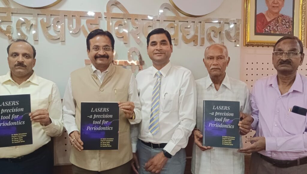 झांसी। बुंदेलखंड विश्वविद्यालय के कुलपति मुकेश पांडे ने डॉ. रॉबिन श्रीवास्तव एवं डॉ. आर. पी. श्रीवास्तव द्वारा लिखित पुस्तक “Lasers: A Precision Tool for Periodontics” का विधिवत विमोचन किया।इस अवसर पर डॉ. रॉबिन श्रीवास्तव ने बताया कि आधुनिक चिकित्सा में लेज़र तकनीक का उपयोग तेजी से बढ़ रहा है और दंत चिकित्सा के क्षेत्र में यह एक सुरक्षित, प्रभावी एवं उन्नत उपचार विकल्प के रूप में उभर कर सामने आई है। उन्होंने कहा कि पुस्तक में लेज़र तकनीक की कार्यप्रणाली, क्लिनिकल उपयोग, विभिन्न उपचारों में इसकी भूमिका और सुरक्षा मानकों को वैज्ञानिक ढंग से प्रस्तुत किया गया है। यह पुस्तक दंत चिकित्सा के विद्यार्थियों, स्नातकोत्तर छात्रों और प्रैक्टिस कर रहे चिकित्सकों के लिए उपयोगी साबित होगी।कार्यक्रम में डॉ. आर. पी. श्रीवास्तव के योगदान का भी उल्लेख किया गया, जिन्हें पूर्व प्रधानमंत्री इंदिरा गांधी द्वारा सम्मानित किया जा चुका है। साथ ही वर्ष 2001 में तत्कालीन राज्यपाल विष्णुकांत शास्त्री द्वारा ‘बेस्ट टीचर अवॉर्ड’ और गोल्ड मेडल से भी सम्मानित किया गया था।इस मौके पर डॉ. ऋतिका श्रीवास्तव, डॉ. संजीव श्रीवास्तव, डॉ. ए.के. श्रीवास्तव और आर.सी. श्रीवास्तव सहित कई गणमान्य लोग उपस्थित रहे।कुलपति मुकेश पांडे ने पुस्तक लेखन की सराहना करते हुए कहा कि इस प्रकार के शोधपरक कार्य न केवल शिक्षा की गुणवत्ता बढ़ाते हैं, बल्कि युवाओं को नवाचार और अकादमिक उत्कृष्टता की दिशा में प्रेरित भी करते हैं। उन्होंने विश्वास जताया कि यह पुस्तक दंत चिकित्सा में लेज़र तकनीक को समझने और शोध कार्यों को नई दिशा देने में महत्वपूर्ण भूमिका निभाएगी।