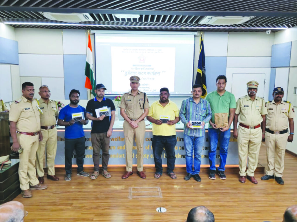 मुंबई। मुंबई पुलिस के परिमंडल 08 अंतर्गत बीकेसी, खेरवाड़ी, निर्मलनगर, वकोला, विलापार्ले, सहार और हवाईअड्डा के सात पुलिस स्टेशनों द्वारा अपराधों से जब्त की गई संपत्ति को सामूहिक रूप से लौटाने के लिए बुधवार को एक विशेष कार्यक्रम आयोजित किया गया। इस कार्यक्रम का मुख्य उद्देश्य विभिन्न अपराधों के तहत जब्त की गई संपत्तियों को सही स्वामियों के हवाले करना था। पुलिस अधिकारियों ने बताया कि जब्त की गई संपत्तियों में सोनसाखली चोरी, जबरन चोरी और साइबर अपराध से संबंधित अन्य वस्तुएँ शामिल थीं। कुल मिलाकर 68,38,635 रुपये मूल्य की संपत्ति जब्त की गई, जिसमें 8,24,000 रुपये की नकली पिज्जा भी शामिल है। इस प्रकार कुल जब्त संपत्ति की कीमत 86,62,635 रुपये हुई। इस विशेष समारोह के मुख्य अतिथि पुलिस उपायुक्त मनीष कलवानिया थे। कार्यक्रम में 86,62,635 रुपये मूल्य की संपत्ति 89 वास्तविक मालिकों को वापस की गई। कार्यक्रम में खेरवाड़ी और विमानतल विभाग के सहायक पुलिस आयुक्तों के साथ-साथ सभी सात पुलिस थानों के वरिष्ठ पुलिस निरीक्षक भी उपस्थित रहे। यह आयोजन पुलिस की पारदर्शिता और उत्तरदायित्व को दर्शाता है और समुदाय में विश्वास बढ़ाने में मदद करेगा। समारोह के अंत में मनीष कलवानिया ने कहा, “हमारी कोशिश है कि अपराधों से प्रभावित व्यक्तियों को न्याय मिले और हम उनकी संपत्ति उन्हें वापस करने के लिए प्रतिबद्ध हैं। पुलिस और समुदाय के बीच बेहतर संपर्क स्थापित करना हमारी प्राथमिकता है। यह कार्यक्रम न केवल पुलिस कार्यप्रणाली में पारदर्शिता को दर्शाता है, बल्कि इसे नागरिकों के प्रति उनकी जिम्मेदारी को भी स्पष्ट करता है।