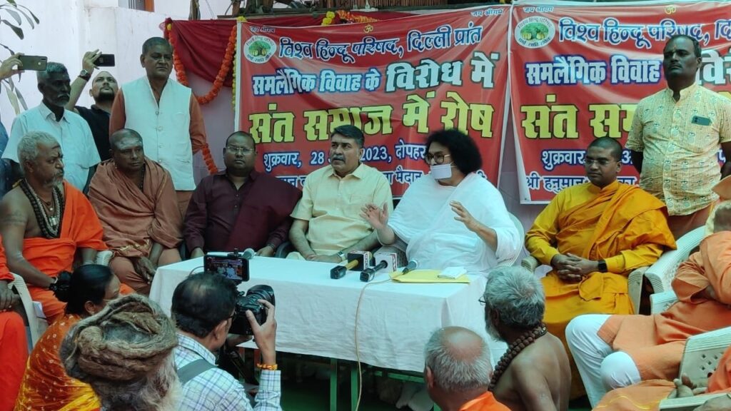 नई दिल्ली। विश्व हिंदू परिषद दिल्ली प्रांत ने सुप्रीम कोर्ट के समलैंगिक विवाह को अनुमति देने के मामले पर कड़ा विरोध जताया है। विश्व हिंदू परिषद के साथ-साथ दक्षिण भारत एवं उत्तर भारत के संत समाज ने भी दुख व्यक्त करते हुए कड़ा रोष प्रकट किया है। विश्व हिंदू परिषद दिल्ली प्रांत व संत समाज ने 28 अप्रैल 2023 को संपन्न हुई प्रेस वार्ता में पत्रकारों से बातचीत के दौरान अपनी बात रखते हुए जैन संत पूज्य लोकेश मुनि जी ने कहा कि समलैंगिक विवाह भारत की संस्कृति से मेल नहीं खाता अतः ऐसे किसी भी अधिकार को कानूनन मान्यता देना गलत है। उन्होंने कहा हम सभी भारत के संविधान और कानून का सम्मान करते हैं हम यह मानते हैं कि हमारा संविधान सबको अपने ढंग से जीने का अधिकार देता है किंतु निवेदन करना चाहते हैं कि समलैंगिक विवाह को कानूनी मान्यता प्रदान करना निश्चित रूप से भारत की सभ्यता एवं संस्कृति के खिलाफ होगा, उसके साथ खिलवाड़ करने जैसा होगा। उनके अनुसार भारत जैसे 135 करोड़ वाली जनसंख्या वाले देश में केवल कुछ लोगों के कहने से 134 करोड़ से भी ज्यादा लोगों की सभ्यता और संस्कृति को खतरे में डाल देना इस पर चिंतन करने की आवश्यकता है। विश्व हिंदू परिषद के प्रांत अध्यक्ष श्री कपिल खन्ना जी ने कहा कि हम भारत की न्याय व्यवस्था का सम्मान करते हैं। हमने सालों तक राम मंदिर के लिए कोर्ट के सम्मानजनक आदेश का इंतजार किया है आज भी हम भारत की न्याय व्यवस्था में पूरी श्रद्धा रखते हैं और इस व्यवस्था से अपने प्रति सकारात्मक दृष्टिकोण की उपेक्षा करते हैं। उन्होंने कहा उपस्थित संत समाज के साथ-साथ सामाजिक व्यवस्था में भी लोग इस व्यवस्था को लेकर द्रवित और चिंतित है। यह आम धारणा है कि समलैंगिकता को मान्यता प्राप्त होने से भारत की संस्कृति और सभ्यता और भारत की मूलभूत धार्मिक भावनाओं को खतरे में डालने जैसा होगा। पूज्य बौद्ध संत भंते संघप्रिय राहुल का कहना है कि समाज विवाह को परिभाषित करता है और कानून उसे केवल मान्यता देता है। विवाह कानून द्वारा रचित एक सामाजिक संस्था नहीं है बल्कि यह एक सदियों पुरानी संस्था है जिसे समाज ने समय के साथ परिभाषित और विकसित किया है। एक लोकतांत्रिक व्यवस्था में चुनाव के द्वारा चुनी गई सरकार लोगों की इच्छाओं को व्यक्त करती है विधानमंडल के माध्यम से व्यक्त की गई जन अभिव्यक्ति से विवाह जैसी संस्था में कोई भी संशोधन प्रभावी नहीं होना चाहिए। इस अवसर पर दक्षिण भारत से पूज्य स्वामी शिवाजी राव, स्वामी रामानन्द स्वामिंगल, पूज्य आत्मानन्द स्वामिंगल, इस्कॉन से मुरली प्रभु सहित विश्व हिंदू परिषद दिल्ली प्रांत अध्यक्ष कपिल खन्ना एवं प्रांत सह मंत्री अशोक गुप्ता ने संबोधित किया।