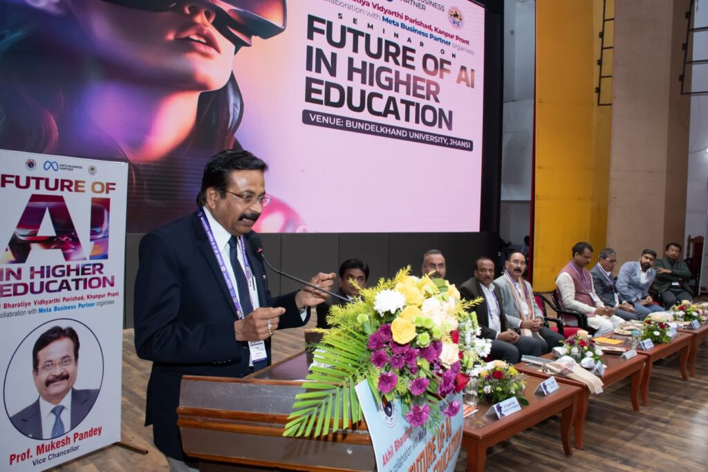 झांसी, उत्तर प्रदेश। बुंदेलखंड विश्वविद्यालय के गांधी सभागार में अखिल भारतीय विद्यार्थी परिषद एवं मेटा बिजनेस पार्टनर के सहयोग से उच्च शिक्षा में एआई विषय पर एक दिवसीय संगोष्ठी का आयोजन किया गया। इसमें शिक्षा, तकनीक और नवाचार से जुड़े कई प्रतिष्ठित अतिथियों ने सहभागिता की। कार्यक्रम के मुख्य अतिथि अखिल भारतीय विद्यार्थी परिषद (अभाविप) के क्षेत्रीय संगठन मंत्री घनश्याम शाही रहे। अध्यक्षता विश्वविद्यालय के कुलपति प्रोफेसर मुकेश पांडेय ने की। इस अवसर पर विभिन्न क्षेत्रों से आए विशिष्ट अतिथियों ने विद्यार्थियों को भविष्य की चुनौतियों और अवसरों के प्रति जागरूक किया। अपने संबोधन में मुख्य अतिथि घनश्याम शाही ने कहा कि आज का युवा भारत के निर्माण में सबसे महत्वपूर्ण भूमिका निभा सकता है। उन्होंने विद्यार्थियों से आह्वान किया कि वे केवल डिग्री प्राप्त करने तक सीमित न रहें, बल्कि समाज और राष्ट्र के विकास में सक्रिय भागीदारी निभाएं। उन्होंने संगठन, नेतृत्व और अनुशासन को सफलता की कुंजी बताते हुए कहा कि शिक्षा का उद्देश्य केवल रोजगार नहीं, बल्कि व्यक्तित्व निर्माण भी है। कार्यक्रम की अध्यक्षता करते हुए कुलपति प्रोफेसर मुकेश पांडेय ने विश्वविद्यालय में हो रहे नवाचारों और शैक्षणिक सुधारों पर प्रकाश डाला। उन्होंने कहा कि बुंदेलखंड विश्वविद्यालय विद्यार्थियों को गुणवत्तापूर्ण शिक्षा के साथ-साथ आधुनिक तकनीकी ज्ञान उपलब्ध कराने के लिए निरंतर प्रयासरत है। उन्होंने अतिथियों का स्वागत करते हुए आशा व्यक्त की कि ऐसे कार्यक्रम छात्रों को नई दिशा देने में सहायक सिद्ध होंगे। विशिष्ट अतिथि रहीश सिंह, सलाहकार मुख्यमंत्री उत्तर प्रदेश ने बताया कि वैश्य प्रदर्शित विशेष कर तकनीक के क्षेत्र में भारतीयों का लोहा हर कोई मान रहा है। विश्व के सभी देश भारत को एक चुनौती के रूप में ले रहे हैं। छात्रों को बदलते प्रवेश के लिए तैयार रहना होगा एवं शिक्षा एवं नवाचार के माध्यम से भारत को अग्रणी राष्ट्र बनाना है। विशिष्ट अतिथि एवं सॉफ्टवेयर पार्क के पूर्व डीजी ओमकार राय ने तकनीकी शिक्षा के महत्व पर जोर दिया। उन्होंने कहा कि डिजिटल युग में कौशल आधारित शिक्षा अत्यंत आवश्यक है और विद्यार्थियों को बदलती तकनीकों के साथ स्वयं को लगातार अपडेट रखना चाहिए। उन्होंने स्टार्टअप संस्कृति को अपनाने और नवाचार की दिशा में कार्य करने के लिए युवाओं को प्रेरित किया। सेना की टेक्निकल विंग के मेज़र अभिरूप डे ने बताया कि वह विश्वविद्यालय के छात्रों के साथ मिलकर ए आधारित समस्याओं को लेकर काम करना चाह रहे हैं जिससे तकनीक आधारित युद्ध की समस्याओं को समाधान मिल सके। मेटा बिजनेस पार्टनर फैज़ ने डिजिटल प्