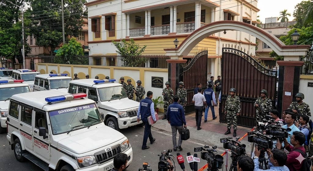 कोलकाता, पश्चिम बंगाल। प्रवर्तन निदेशालय (ईडी) ने शिक्षक भर्ती घोटाले से जुड़े धनशोधन मामले में पश्चिम बंगाल के पूर्व शिक्षा मंत्री पार्थ चटर्जी के ठिकानों पर शनिवार को एक बार फिर व्यापक छापेमारी की। यह कार्रवाई दक्षिण कोलकाता के नाकतला स्थित उनके आवास और कथित बिचौलिए प्रसन्ना कुमार रॉय के न्यू टाउन स्थित घर पर की गई। सूत्रों के अनुसार, केंद्रीय बलों की बड़ी तैनाती के बीच सुबह-सुबह ईडी की टीम चटर्जी के आवास पर पहुंची और घर के अंदर-बाहर कड़ी सुरक्षा व्यवस्था कर तलाशी अभियान शुरू किया। अधिकारियों ने घर में मौजूद लोगों से पूछताछ करने के बाद सीधे अंदर प्रवेश कर पूर्व मंत्री से कई अहम बिंदुओं पर पूछताछ शुरू की, जो खबर लिखे जाने तक जारी थी। बताया जा रहा है कि यह कार्रवाई पश्चिम बंगाल केंद्रीय विद्यालय सेवा आयोग (एसएससी) द्वारा कक्षा 9 से 12 तक सहायक शिक्षकों की भर्ती में कथित अनियमितताओं के मामले में की जा रही है। ईडी इस पूरे प्रकरण में मनी लॉन्ड्रिंग के पहलुओं की जांच कर रही है। अधिकारियों के मुताबिक, चटर्जी के तीन बार पूछताछ में उपस्थित नहीं होने के बाद एजेंसी ने यह सख्त कदम उठाया।