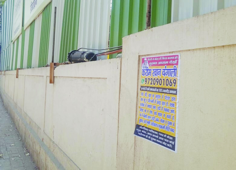 मुंबई। विक्रोली पश्चिम स्थित रीगालीया बिजनेस पार्क की बाउंड्रीवाल पर करीम खान और सुलेमान खान नामक फर्जी बंगाली बाबाओं के तंत्र-मंत्र प्रचार के पोस्टर लगे होने से स्थानीय लोगों में चिंता का माहौल है। एलबीएस मार्ग पर सिप्ला कंपनी के सामने स्थित इस प्रोजेक्ट की बाउंड्री गेट पर लगे इन पोस्टरों में साईं बाबा की तस्वीर का उपयोग करते हुए भोले-भाले लोगों को आकर्षित करने की कोशिश की जा रही है।