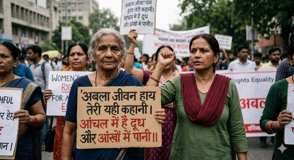 सत्ता और पौरुष बल ने हमेशा ही नारियों को कमजोर समझकर ‘भोग्या वस्तु’ माना है। मर्द की इसी मानसिकता से क्लांत होकर कवयित्री को लिखना पड़ा— ‘अबला जीवन हाय तुम्हारी यही कहानी, आंचल में है दूध और आंखों में पानी’। यहां तक कि अंबेडकर के नाम पर यह भी प्रचारित किया गया कि उन्होंने महिलाओं को राजनीति में लाने का विरोध करते हुए कहा था कि महिलाएं घर-आंगन बुहारने, भोजन बनाने, बर्तन-कपड़े साफ करने और बच्चा जनने के लिए हैं, उन्हें आंगन से बाहर नहीं निकलना चाहिए। सहस्त्राब्दियों से नारियां सत्ता द्वारा छली जाती रही हैं। सती सावित्री को यमराज ने, अहिल्या को इंद्रदेव ने और सीता को त्रैलोक्य विजयी रावण ने छला। आज भी सत्ता में बैठे ‘भूखे भेड़ियों’ द्वारा महिलाओं का शील-हरण किया जा रहा है।
