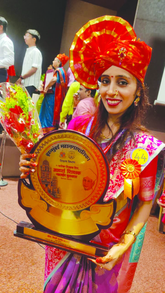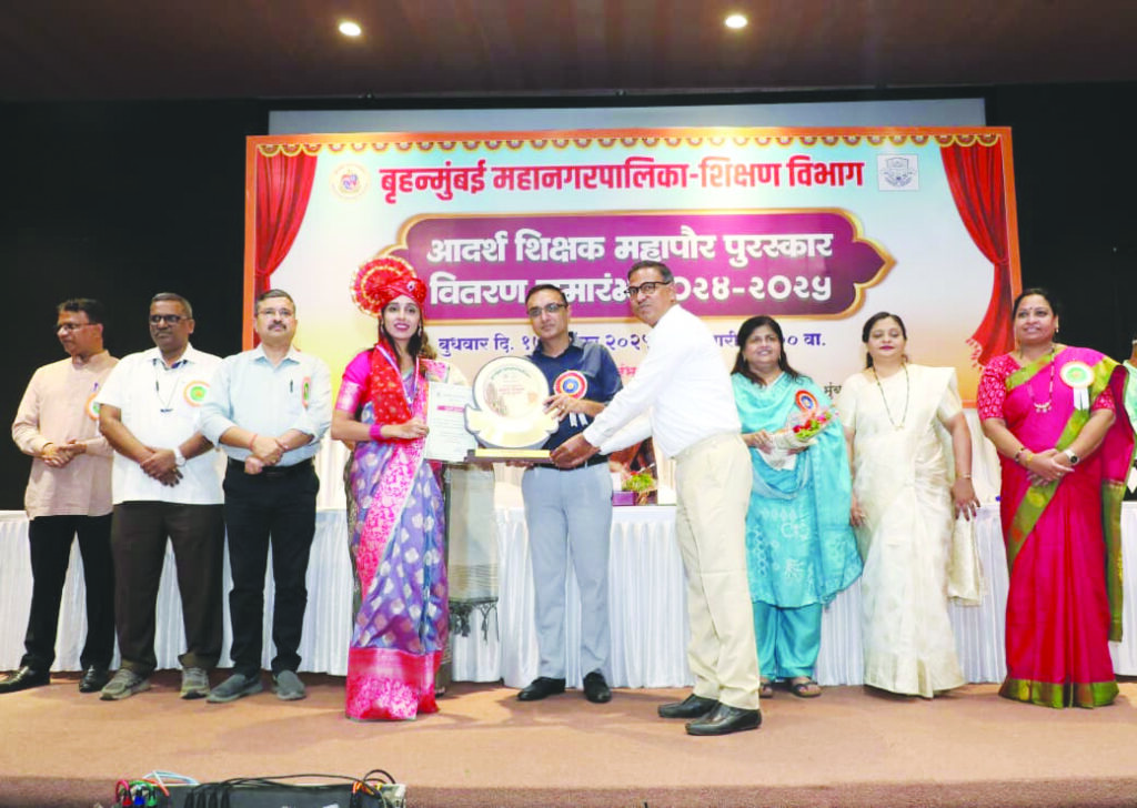 मुंबई। श्री आर.एन.शेठ इंग्लिश स्कूल की प्रधानाध्यापिका कीर्ति संतोष पानसरे को बृहन्मुंबई महानगर पालिका द्वारा शिक्षा के क्षेत्र में उत्कृष्ट कार्य हेतु प्रतिष्ठित ‘आदर्श शिक्षक महापौर पुरस्कार’ से सम्मानित किया गया। विनम्र और सहयोगी स्वभाव की कीर्ति पानसरे विशेष रूप से जरूरतमंद और कमजोर विद्यार्थियों के लिए समर्पित रहती हैं। वे विद्यार्थियों में शिक्षा के प्रति सक्रियता उत्पन्न करने, आत्मविश्वास बढ़ाने और बौद्धिक विकास हेतु अनेक उपक्रम संचालित करती रहती हैं। विद्यालय की गतिविधियों में पोस्टर लेखन, अंतर-विद्यालय प्रतियोगिताओं में मार्गदर्शन, तकनीकी रूप से दक्ष शिक्षकों द्वारा विद्यालय की गतिविधियों के वीडियो बनाना, अभिभावकों के साथ संवाद स्थापित करना तथा विभिन्न खेलों एवं सांस्कृतिक कार्यक्रमों के माध्यम से विद्यार्थियों की रुचियों को पहचानकर उनकी सहभागिता बढ़ाने जैसे कार्यों से वे विद्यार्थियों के सर्वांगीण विकास हेतु लगातार प्रयत्नशील रहती हैं। इस सम्मान समारोह का आयोजन पेंगुइन हॉल, वीर जीजामाता उद्यान, सावता माली मार्ग, भायखला (पूर्व) में किया गया। इस अवसर पर मनपा आयुक्त एवं प्रशासक भूषण गगरानी समेत अनेक गणमान्य व्यक्ति उपस्थित थे। समारोह में शिक्षा विभाग के अनेक अधिकारी और सैकड़ों गणमान्यजन भी उपस्थित रहे।