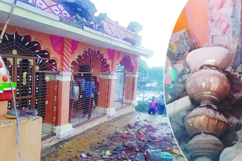 धुले। महाराष्ट्र के धुले जिले के शिरपुर में एक हैरान करने वाली घटना सामने आई है। यहां के भोयटी गांव में मौजूद हनुमान जी के मंदिर पर आकाशीय बिजली गिरने के कारण मंदिर के कुछ हिस्सो के क्षतिग्रस्त होने की खबर सामने आई है। लेकिन मंदिर में मौजूद बजरंगबली की प्रतिमा समेत किसी भी प्रतिमा में खरोंच तक नहीं आई। वहीं, मंदिर के आसपास रहने वाले लोगों को किसी भी तरह का नुकसान नहीं हुआ। ग्राम प्रधान ने घटना की जानकारी प्रशासन को दे दी है। घटना गुरुवार शाम की है। ग्रामीणों ने बताया कि करीब 5 बजे तेज आवाज के साथ मंदिर पर कुछ गिरा। बाद में पता चला कि यह तो आकाशीय बिजली थी। जब लोग वहां पहुंचे तो मंदिर का कुछ हिस्सा क्षतिग्रस्त हो गया था। ग्रामीणों ने बताया कि ऐसा प्रतीत हो रहा था कि हनुमान जी की प्रतिमा भी टूट गई होगी। लेकिन, जब पास जाकर देखा गया तो प्रतिमा को कोई नुकसान नहीं पहुंचा था। वहीं, गांव के ग्राम प्रधान ने घटना की जानकारी स्थानीय प्रशासन को दी है।