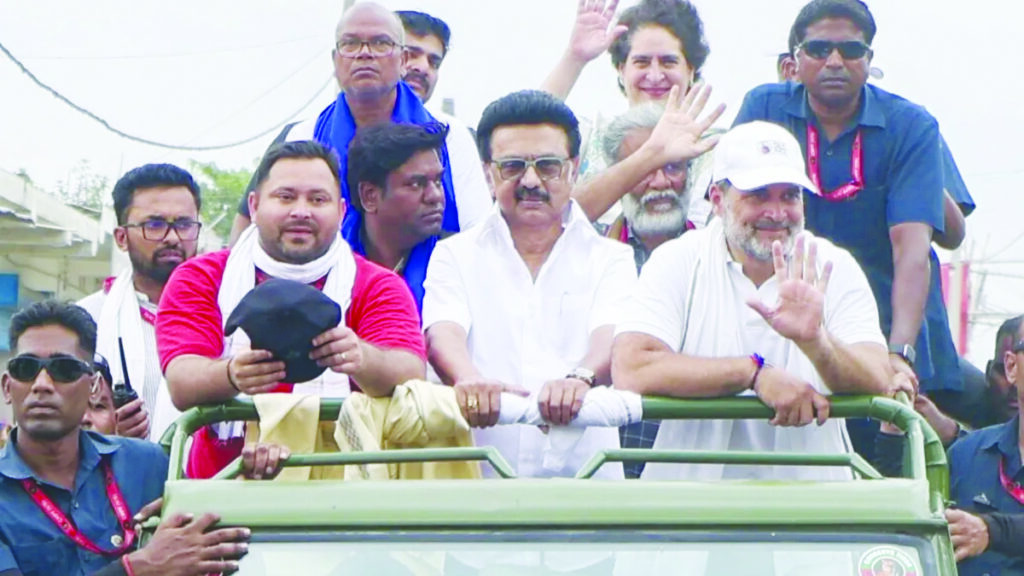 मुजफ्फरपुर। तमिलनाडु के मुख्यमंत्री एम.के.स्टालिन ने बिहार के मुजफ्फरपुर में आयोजित ‘वोटर अधिकार रैली’ में कांग्रेस सांसद राहुल गांधी, आरजेडी नेता तेजस्वी यादव और अन्य नेताओं के साथ मंच साझा करते हुए भाजपा और चुनाव आयोग पर गंभीर आरोप लगाए। उन्होंने कहा कि केंद्र सरकार ने चुनाव आयोग को रिमोट कंट्रोल से चलने वाली कठपुतली बना दिया है और बिहार के लोगों के नाम मतदाता सूची से हटाकर लोकतंत्र के साथ खिलवाड़ किया जा रहा है। स्टालिन ने कहा, राहुल गांधी ने चुनाव आयोग की ‘वोट चोरी’ का पर्दाफाश किया है। मुख्य चुनाव आयुक्त ज्ञानेश कुमार कह रहे हैं कि राहुल गांधी को हलफनामा देना चाहिए या माफी मांगनी चाहिए। क्या राहुल गांधी इन सब से कभी डरेंगे? भाजपा उन पर इसलिए हमला कर रही है, क्योंकि इससे यह उजागर हुआ है कि भाजपा ने चुनावों को कैसे मजाक बना दिया है। रैली में स्टालिन ने राहुल गांधी और तेजस्वी यादव के रिश्ते को राजनीतिक से परे बताते हुए कहा, राहुल गांधी और तेजस्वी यादव की दोस्ती सिर्फ राजनीति नहीं है, यह दो भाइयों का रिश्ता है। यह दोस्ती उन्हें विजयी बनाएगी। हम लोकतंत्र की रक्षा के लिए एकजुट हुए हैं। उन्होंने पूर्व मुख्यमंत्री करुणानिधि और लालू प्रसाद यादव की मित्रता को याद करते हुए कहा कि लालू यादव देश के सबसे प्रमुख नेताओं में से एक हैं, क्योंकि वे भाजपा से कभी नहीं डरे। स्टालिन ने कहा कि तेजस्वी यादव भी अपने पिता के नक्शेकदम पर चल रहे हैं और लोकतंत्र को बचाने की लड़ाई में मजबूती से खड़े हैं।