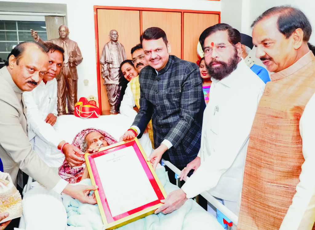 नई दिल्ली। विश्वप्रसिद्ध मूर्तिकार राम सुतार को महाराष्ट्र सरकार द्वारा २०२४ का सर्वोच्च नागरिक सम्मान ‘महाराष्ट्र भूषण’ प्रदान किया गया। मुख्यमंत्री देवेंद्र फडणवीस ने नोएडा स्थित सुतार के आवास पर आयोजित समारोह में यह सम्मान सौंपते हुए कहा कि राम सुतार की मूर्तियाँ इतिहास की साक्षी हैं, और उनकी रचनाएँ सदियों तक हमारी सांस्कृतिक विरासत को जीवित रखेंगी। सम्मान में एक पट्टिका, प्रमाण पत्र और २५ लाख रुपये की राशि प्रदान की गई। कार्यक्रम में उपमुख्यमंत्री एकनाथ शिंदे, उपमुख्यमंत्री अजित पवार, सांस्कृतिक मामले मंत्री आशीष शेलार, सांसद महेश शर्मा तथा अन्य गणमान्य लोग उपस्थित रहे। फडणवीस ने कहा कि राम सुतार की अद्वितीय कलाकृतियाँ भारत की शान हैं और उनकी प्रतिभा ने महाराष्ट्र भूषण पुरस्कार की गरिमा को और ऊँचा किया है। उन्होंने बताया कि सुतार के हृदय में महाराष्ट्र के प्रति विशेष प्रेम है, जो उनके कार्यों और उनकी पहचान में झलकता है। उपमुख्यमंत्री एकनाथ शिंदे ने भी सुतार के योगदान को वैश्विक स्तर पर महत्वपूर्ण बताते हुए कहा कि राम सुतार केवल भारत ही नहीं, दुनिया के मूर्तिकार हैं। वहीं अजित पवार ने कहा कि सुतार की कला महाराष्ट्र का गौरव है और इंदु मिल में बन रहे डॉ. बाबासाहेब आंबेडकर स्मारक में उनकी बनाई विशाल प्रतिमा स्थापित की जाएगी। सुतार परिवार की ओर से अनिल सुतार ने महाराष्ट्र सरकार का आभार व्यक्त किया। इस दौरान मुख्यमंत्री फडणवीस ने राम सुतार के स्वास्थ्य का हालचाल भी लिया। कार्यक्रम में सुतार परिवार के सभी प्रमुख सदस्य और अधिकारी मौजूद रहे।