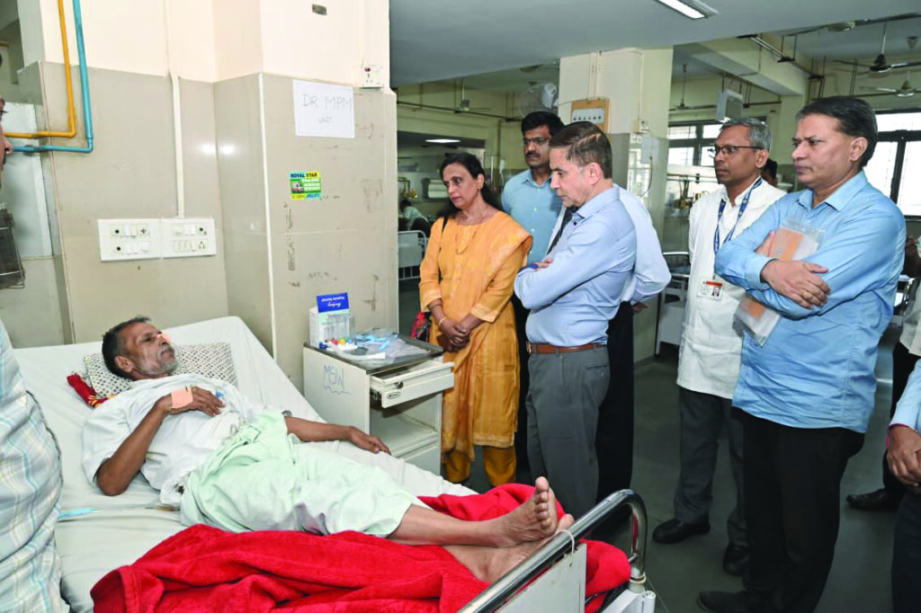 मुंबई। मनपा आयुक्त और प्रशासक भूषण गगरानी ने मंगलवार को बृहन्मुंबई महानगरपालिका के विले पार्ले स्थित डॉ. आर. एन. कूपर अस्पताल का दौरा किया। दौरे का उद्देश्य अस्पताल में मरीज़ों को दी जाने वाली सेवाओं को और अधिक असरदार, सुविधाजनक और मरीज़-केन्द्रित बनाना था। इस दौरान श्री गगरानी ने मेडिकल सेवाओं के विस्तार, नई सुविधाओं और ज़रूरी सुधारों का जायज़ा लिया। उन्होंने अस्पताल परिसर को साफ़, सुरक्षित और मरीज़ों के अनुकूल बनाने के निर्देश दिए, जिसमें सफाई और कचरा प्रबंधन पर विशेष ध्यान देने को कहा गया। मनपा आयुक्त ने मरीज़ों, उनके रिश्तेदारों, मेडिकल अधिकारियों और कर्मचारियों से सीधे बातचीत कर सेवा व्यवस्था की वास्तविक स्थिति का आकलन भी किया। इस मौके पर डिप्टी कमिश्नर (पब्लिक हेल्थ) शरद उघड़े, अस्पताल के डीन डॉ. सुधीर मेढेकर, फार्मेसी विभाग की प्रमुख एवं पोस्टग्रेजुएट डीन डॉ. (श्रीमती) नीलम रेडेकर, मेडिकल सुपरिटेंडेंट देव शेट्टी, डॉ. प्रवीण बांगर और अन्य संबंधित अधिकारी मौजूद थे।