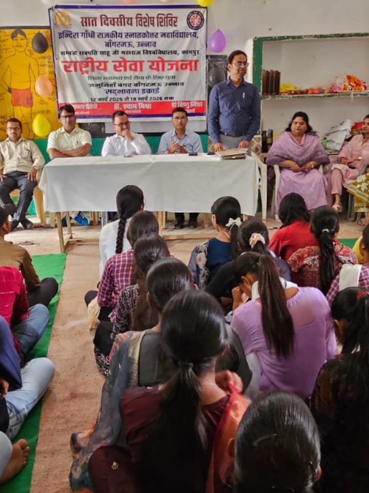 भूपेंद्र सिंह/ उन्नाव, उत्तर प्रदेश। इंदिरा गांधी राजकीय स्नातकोत्तर महाविद्यालय की राष्ट्रीय सेवा योजना के समापन दिवस पर प्रथम सत्र में स्वयंसेवकों ने जमुनिया बंगर गांव की समस्याओं को सुना तथा उनके निराकरण का आश्वासन भी दिया। कार्यक्रम का समापन मुख्य अतिथि महाविद्यालय के प्राचार्य डॉक्टर विष्णु मिश्रा तथा विशिष्ट अतिथि गांव के प्रधान कन्हैयालाल कुशवाह द्वारा किया गया। कार्यक्रम का शुभारंभ सरस्वती वंदना से किया गया। वंदना प्रतीक्षा पाल, अंजलि, रिमझिम, रानी लक्ष्मी बाई टीम ने प्रस्तुत की। प्राचार्य का स्वागत कार्यक्रम अधिकारी डॉक्टर धर्मेंद्र द्विवेदी ने किया। स्वागत गीत झांसी की रानी रोशनी, नैंसी, गुंजन ने प्रस्तुत किया। सात दिनों तक स्वयंसेवकों ने जो भी कार्य किया उसकी आख्या का कार्यक्रम अधिकारी ने वाचन किया। बीएससी की शगुन ने गीत प्रस्तुत किया नुक्कड़ नाटक झांसी की रानी टीम ने मानसिक तनाव पर प्रस्तुत किया। जिसमें एक बच्चे के मानसिक विचलन की घटना को प्रस्तुत किया। प्रतीक्षा पाल तथा संकल्प ने सात दिवसीय शिविर के अनुभवों को साझा किया। किरण बेदी टीम द्वारा नुक्कड़ नाटक साइबर सिक्योरिटी पर प्रस्तुत किया गया। नाटक के माध्यम से साइबर ठगी से बचने का संदेश नाटक द्वारा दिया गया। एकता दिवस, युवा दिवस, सड़क सुरक्षा पर भाषण, दौड़ स्लोगन, निबंध प्रतियोगिताएं कराई गई। विजेता छात्र-छात्राओं को मेडल एवं प्रमाण पत्र प्राचार्य द्वारा वितरित किए गए। अल्फा टीम द्वारा संकल्प गीत प्रस्तुत किया गया। धन्यवाद ज्ञापन डॉक्टर धर्मेंद्र कुमार द्विवेदी ने दिया तथा कार्यक्रम का सफल संचालन डॉक्टर रविराज वर्मा ने किया। इस अवसर पर महाविद्यालय के समस्त प्राध्यापक डॉ दिग्विजय नरायन, डॉ सविता राजन, डॉ हरिओम दिवाकर, डॉ सुनीता निरंकारी, डॉ अभिषेक कुमार, डॉ अभय राजपूत, डॉ शैलजा त्रिपाठी, डॉ ब्रज किशोर गुप्ता व समस्त कर्मचारी उपस्थित रहे।