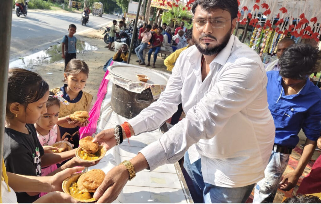 नवरात्रि समापन पर फतेहपुर चौरासी में कन्या पूजन, भव्य भंडारा और भक्तिमय माहौल