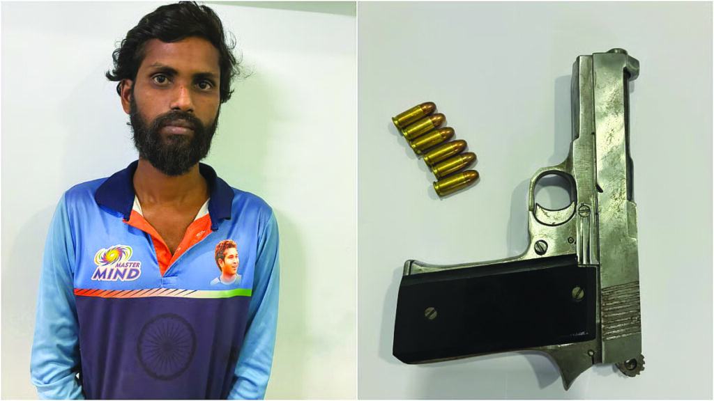 नवी मुंबई। आगामी नगर निगम चुनावों से पहले सुरक्षा व्यवस्था कड़ी करते हुए पनवेल सिटी पुलिस ने शनिवार रात पनवेल रेलवे स्टेशन के पास एक बड़ी कार्रवाई को अंजाम दिया। पुलिस ने अवैध हथियार और जिंदा कारतूस रखने के आरोप में 36 वर्षीय एक व्यक्ति को गिरफ्तार किया है। आरोपी के पास से एक पिस्तौल और छह जिंदा कारतूस बरामद किए गए हैं। गिरफ्तार आरोपी की पहचान अनंत अधिमुलाम पडायाची (36), निवासी सानपाड़ा, नवी मुंबई के रूप में हुई है। पुलिस को गुप्त सूचना मिली थी कि एक व्यक्ति पनवेल रेलवे स्टेशन के आसपास अवैध हथियार और गोला-बारूद बेचने के इरादे से आने वाला है। इस सूचना के आधार पर पनवेल सिटी पुलिस ने तुरंत जाल बिछाया। सीनियर पुलिस इंस्पेक्टर नितिन ठाकरे के मार्गदर्शन में असिस्टेंट पुलिस इंस्पेक्टर सचिन पवार, सब-इंस्पेक्टर सुनील वाघ, असिस्टेंट सब-इंस्पेक्टर किरण राउत और अन्य पुलिसकर्मियों की एक विशेष टीम गठित की गई। शनिवार रात करीब 10.30 बजे, रेलवे स्टेशन के पास एक व्यक्ति संदिग्ध अवस्था में घूमता हुआ दिखाई दिया। पुलिस ने उसे रोककर पूछताछ की और तलाशी के दौरान उसके पास से एक पिस्तौल और छह जिंदा कारतूस बरामद किए गए। इसके बाद आरोपी को तुरंत अवैध हथियार रखने के आरोप में गिरफ्तार कर लिया गया और हथियार व कारतूस जब्त कर लिए गए। सीनियर पुलिस इंस्पेक्टर नितिन ठाकरे ने बताया- विश्वसनीय खुफिया जानकारी के आधार पर यह कार्रवाई की गई। हमारी टीम ने योजनाबद्ध तरीके से ऑपरेशन को अंजाम दिया और आरोपी को अवैध हथियार व जिंदा कारतूस के साथ पकड़ा। अब यह जांच की जा रही है कि हथियार कहां से लाया गया था और इसे किसे बेचा जाना था। पुलिस के अनुसार, आगे की जांच में यह भी पता लगाया जा रहा है कि कहीं इस हथियार का इस्तेमाल किसी आपराधिक या चुनावी हिंसा की साजिश में तो नहीं किया जाना था।