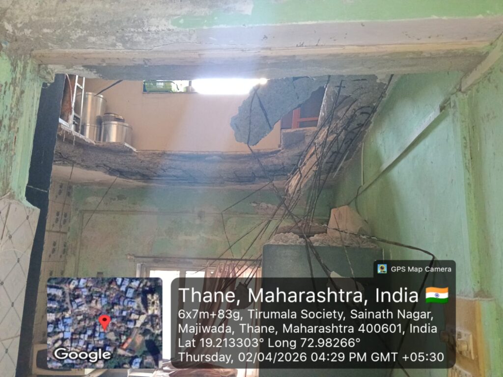 ठाणे। संवाददाताठाणे में गुरुवार दोपहर करीब 4 बजे माजिवाडा इलाके में फातिमा चर्च के पास स्थित वेलंकानी बिल्डिंग का एक स्लैब अचानक गिर गया। इस हादसे में कीर्ति कविलकर (लगभग 70 वर्ष) को मामूली चोटें आईं।ठाणे नगर निगम आपदा प्रबंधन इकाई के अनुसार, गुरुवार 2 अप्रैल 2026 को दोपहर लगभग 3:55 बजे 30 से 35 वर्ष पुरानी इस इमारत की पहली मंजिल पर स्थित कमरा नंबर 103 का स्लैब गिर गया। यह इमारत तहखाना और तीन मंजिलों वाली है।घटना के समय इमारत में करीब 12 फ्लैटों में 40 से 45 लोग रह रहे थे। हादसे के बाद एहतियात के तौर पर पूरी इमारत को खाली करा लिया गया, क्योंकि यह C2A (खतरनाक) श्रेणी में आती है।प्रशासन ने 12 से 15 निवासियों को अस्थायी रूप से शाखापा स्कूल नंबर 47 में स्थानांतरित किया है। शाखापा आपदा प्रबंधन अधिकारी यासीन ताडवी ने बताया कि शेष संरचना के असुरक्षित होने के कारण इमारत को सील कर दिया गया है।स्थानीय प्रशासन ने नागरिकों से अपील की है कि वे खतरनाक घोषित इमारतों में रहने से बचें और समय रहते सुरक्षित स्थानों पर स्थानांतरित हो जाएं।