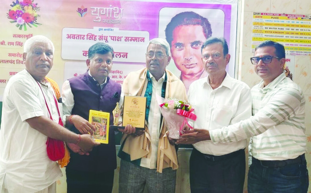 मुंबई। मालाड (पूर्व) स्थित आर.के.कॉलेज में 1 जनवरी 2026 को साहित्यिक गरिमा और वैचारिक ऊँचाई से भरपूर एक विशिष्ट समारोह आयोजित किया गया। युगांश फाउंडेशन के तत्वावधान में आयोजित इस कार्यक्रम में वरिष्ठ कवि राम सिंह को प्रसिद्ध क्रांतिकारी कवि अवतार सिंह संधू ‘पाश’ की स्मृति में दिए जाने वाले ‘पाश सम्मान’ से सम्मानित किया गया।