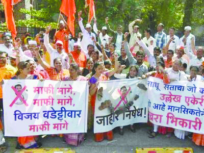 नासिक। नासिक में सोमवार को कांग्रेस नेता विजय वडेट्टीवार के खिलाफ अपमानजनक टिप्पणी करने के आरोप में उनके विरोध में एक प्रतीकात्मक शवयात्रा निकाली गई। यह विरोध प्रदर्शन जगद्गुरु नरेंद्राचार्य महाराज के अनुयायियों द्वारा आयोजित किया गया। प्रदर्शन जिला कलेक्टर कार्यालय के सामने हुआ, और इसमें बड़ी संख्या में लोग शामिल हुए। प्रदर्शन अशोक स्तंभ से शुरू होकर जिला कलेक्टर कार्यालय की ओर बढ़ा, जहां प्रदर्शनकारियों ने “विजय वडेट्टीवार मुर्दाबाद” और “हिंदू धार्मिक नेताओं का अपमान हिंदू धर्म का अपमान है” जैसे नारे लगाए। इस दौरान उन्होंने विजय वडेट्टीवार से सार्वजनिक रूप से माफी की मांग की और चेतावनी दी कि जब तक माफी नहीं मिलती, उनका आंदोलन जारी रहेगा। सभा को संबोधित करते हुए, नरेंद्राचार्य महाराज के अनुयायियों ने कहा कि वडेट्टीवार की टिप्पणियों ने उनकी भावनाओं को गहरी चोट पहुँचाई है। उन्होंने यह भी संकेत दिया कि यह मुद्दा आगामी चुनावों में कांग्रेस पार्टी को प्रभावित कर सकता है, क्योंकि वे अपनी नाराजगी का इज़हार वोटों के माध्यम से करेंगे। विरोध प्रदर्शन में कई राजनीतिक हस्तियों और कार्यकर्ताओं ने हिस्सा लिया, जिनमें विधायक देवयानी फरांडे, नारायण जाधव, प्रवीण ठाकुर, प्रदीप मालानी, उत्तम कोम्बडे और नितिन शेलके शामिल थे। प्रदर्शनकारियों ने स्पष्ट कर दिया कि जब तक वडेट्टीवार सार्वजनिक रूप से माफी नहीं मांगते, उनका आंदोलन खत्म नहीं होगा।