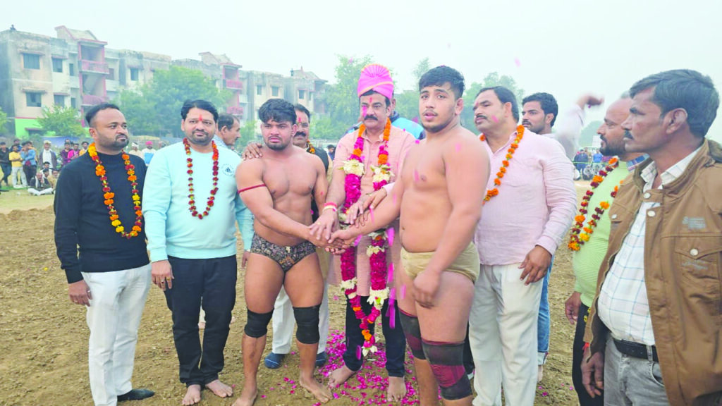 झाँसी, उत्तर प्रदेश। करारी में महाबल सिंह और रामबाबू सिंह गुर्जर की पुण्य स्मृति में भव्य एवं रोमांचक विराट दंगल का आयोजन किया गया। दंगल की शान और गरिमा हजारों दर्शकों की उपस्थिति से और अधिक बढ़ गई। कार्यक्रम का संचालन मेहरबान मास्टर द्वारा किया गया। दंगल में मुख्य अतिथि के रूप में डॉ. संदीप सरावगी उपस्थित रहे। अन्य विशिष्ट अतिथियों में पार्षद गोकुल दुबे, संजय राजपूत, संजय राय बबीना, वी. पी. सिंह गुर्जर, राव राजा गुर्जर, नीतू गुर्जर, गंधर्व सिंह गुर्जर, कैलाश पार्षद, कामेश पार्षद (लहार), दारा सिंह पहलवान तथा चंद्र प्रकाश राव (बबीना) शामिल रहे। दंगल में हुए प्रमुख मुकाबलों में जतिन झांसी ने ढिकोली के मंगल को मात दी, वहीं राजवीर करारी ने अलीगढ़ के सामी पर शानदार जीत दर्ज की। सोनू हरियाणा और शाक्यनूर मेरठ के बीच हुई भिड़ंत ज़बरदस्त संघर्ष के बाद बराबरी पर समाप्त हुई। इसी तरह कौशल पहलवान ग्वालियर और हमीद पहलवान पंजाब का मुकाबला भी समता पर छूटा, जबकि बल्लू पहलवान भिण्ड और हरदीप पहलवान हरियाणा की बड़ी टक्कर भी बराबरी पर रही। इन्हीं के साथ दिनभर में कई अन्य दर्जनों दमदार कुश्तियाँ भी हुईं, जिनमें पहलवानों ने जोरदार ताकत, दांवपेच और कौशल का प्रदर्शन किया। मुख्य अतिथि डॉ. संदीप सरावगी ने दंगल आयोजकों व पहलवानों की सराहना करते हुए कहा पहलवानी हमारी भारतीय संस्कृति की शान है। यह अनुशासन, ताकत, धैर्य और उच्च चरित्र का प्रतीक है। ऐसे दंगल समाज में युवाओं को सही दिशा और प्रेरणा प्रदान करते हैं। उन्होंने इस अवसर पर एक महत्वपूर्ण घोषणा भी की “करारी व आसपास के क्षेत्रों में शीघ्र ही निःशुल्क नेत्र जाँच शिविर तथा अन्य मेडिकल परीक्षण शिविर लगाए जाएंगे, जिसमें लोगों को निःशुल्क दवा वितरण भी किया जाएगा।” उनकी इस घोषणा का उपस्थित जनता ने उत्साहपूर्वक स्वागत किया।