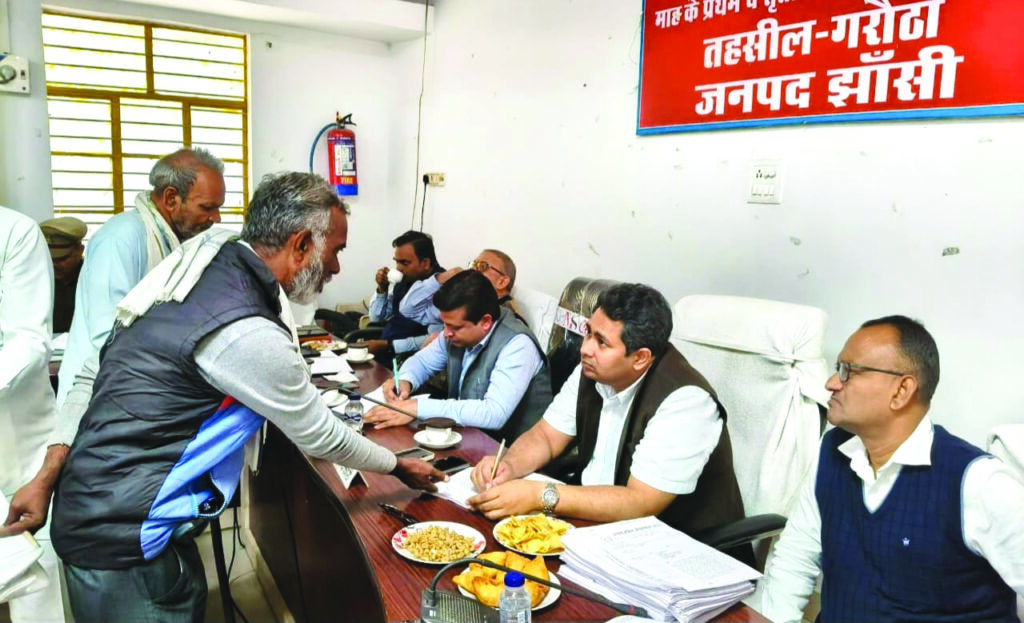 झाँसी, उत्तर प्रदेश। झांसी जनपद में सोमवार को तहसील गरौठा में आयोजित संपूर्ण समाधान दिवस के दौरान जिलाधिकारी मृदुल चौधरी और वरिष्ठ पुलिस अधीक्षक बीबीजीटीएस मूर्ति ने विभिन्न शिकायतों की सुनवाई की और अधिकारियों को समयबद्ध एवं गुणवत्तापूर्ण निस्तारण के निर्देश दिए। जिलाधिकारी ने चेतावनी देते हुए कहा कि पैमाइश के बाद पत्थर गड्डी उखाड़कर दोबारा कब्जा करने वालों पर एफआईआर दर्ज की जाएगी। उन्होंने पराली जलाने की समस्या को रोकने के लिए ग्राम पंचायतों में खुली बैठकों का आयोजन कर किसानों को जागरूक करने पर जोर दिया। जिलाधिकारी ने बताया कि मुख्यमंत्री योगी आदित्यनाथ की प्राथमिकताओं में शामिल संपूर्ण समाधान दिवस पर प्राप्त शिकायतों का गुणवत्तापूर्ण निस्तारण अनिवार्य है। शासन द्वारा लिए जाने वाले फीडबैक में कई शिकायतों के निस्तारण को असंतोषजनक पाए जाने पर उन्होंने नाराजगी व्यक्त की और चेतावनी दी कि लापरवाही बर्दाश्त नहीं की जाएगी। जिलाधिकारी ने भूमि विवादों पर गंभीरता दिखाते हुए कहा कि लेखपाल एवं राजस्व कर्मी अपने क्षेत्रों में जाकर पैमाइश करें, ताकि विवाद उत्पन्न न हों। अवैध कब्जों पर धारा 24, धारा 151 तथा गंभीर मामलों में धारा 145 के तहत कार्रवाई करने के निर्देश दिए। उन्होंने शिकायतकर्ताओं की समस्याओं को सुनते हुए संबंधित अधिकारियों को मौके पर जाकर कार्रवाई करने का आदेश दिया। खड़ौरा गाँव के सेक्टर मार्ग 337 और 379 पर कब्जे की शिकायत मिलने पर जिलाधिकारी ने एसडीएम और क्षेत्राधिकारी को तत्काल स्थलीय निरीक्षण कर मार्ग को कब्जा मुक्त कराने का निर्देश दिया। संपूर्ण समाधान दिवस के दौरान किसानों की फार्मर रजिस्ट्री कराने पर विशेष जोर दिया गया। जिलाधिकारी ने कहा कि भविष्य में प्रधानमंत्री सम्मान निधि सहित अन्य कृषि योजनाओं का लाभ केवल उन्हीं किसानों को मिलेगा जिनकी रजिस्ट्री पूरी होगी। कार्यक्रम स्थल पर स्वास्थ्य विभाग द्वारा जागरूकता स्टॉल लगाया गया, जिसमें लोगों के स्वास्थ्य परीक्षण और आंखों की जांच की गई। इस अवसर पर एसएसपी, वनाधिकारी, सीएमओ, एडीएम वित्त एवं राजस्व सहित विभिन्न विभागों के अधिकारी मौजूद रहे।