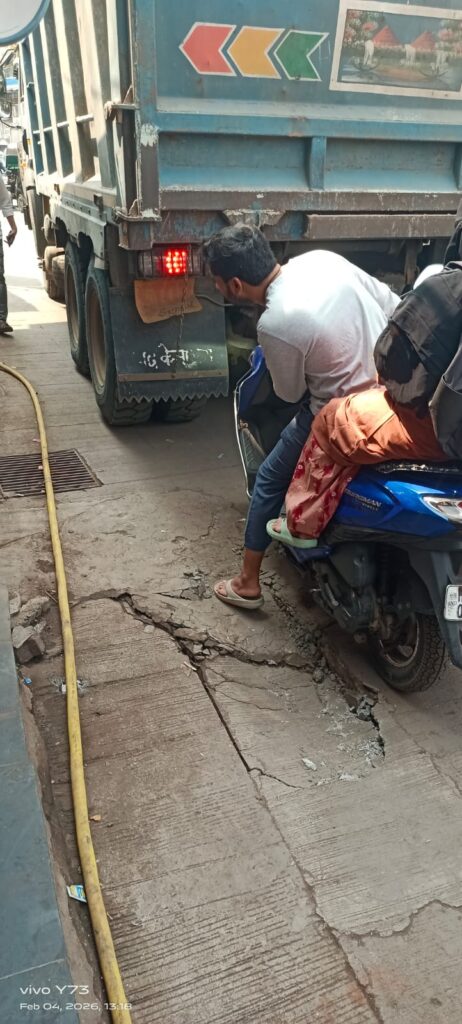 मुंबई। बृहन्मुंबई महानगरपालिका (बीएमसी) के पश्चिम उपनगर रोड विभाग के एच/पूर्व वार्ड क्षेत्र के अभियंताओं और ठेकेदार की कथित मिलीभगत का नतीजा एक बार फिर सामने आया है। खार (पूर्व) स्थित गोलीबार रोड पर किया गया सीसी रोड निर्माण घटिया गुणवत्ता का साबित हो रहा है, जो आम नागरिकों और यातायात के लिए गंभीर खतरा बन चुका है। प्राप्त जानकारी के अनुसार, वार्ड क्रमांक 94 में खार पूर्व स्थित गोलीबार रोड पर लगभग एक वर्ष पूर्व सीसी सड़क का निर्माण किया गया था। निर्माण के समय से ही सड़क की हालत खराब होने लगी थी, जिससे गुणवत्ता पर सवाल खड़े हो गए थे। अब स्थिति यह है कि यह सड़क लगातार धंस रही है और दुर्घटनाओं को न्योता दे रही है। बुधवार को गोकुल सुपर मार्केट के सामने एक डंपर के गुजरने के दौरान सीसी रोड का एक हिस्सा अचानक जमीन में धंस गया। इस घटना से यह साफ हो गया है कि सड़क निर्माण में निर्धारित मानकों का गंभीर उल्लंघन किया गया है।