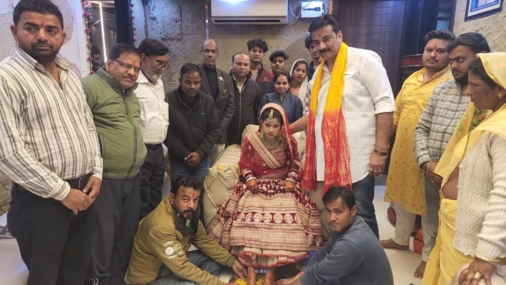 झाँसी, उत्तर प्रदेश। मानव सेवा और सामाजिक कर्तव्य की भावना से प्रेरित एक सराहनीय कार्य के अंतर्गत संघर्ष सेवा समिति द्वारा बिटिया लक्ष्मी रजक के विवाह अवसर पर सहयोग प्रदान किया गया। उत्तर प्रदेश झांसी आवास विकास स्थित आरोग्य सदन अस्पताल क्षेत्र की निवासी लक्ष्मी रजक के पिता स्वर्गीय दशरथ प्रसाद का पहले ही देहांत हो चुका है। ऐसे में माता ममता रजक, जो घरों में भोजन बनाने का कार्य कर परिवार का पालन-पोषण कर रही हैं, ने कठिन परिस्थितियों में भी बेटी के विवाह की जिम्मेदारी निभाई। बिटिया लक्ष्मी का विवाह 5 फरवरी को संपन्न हुआ। विवाह की तैयारियों में संघर्ष सेवा समिति ने सहयोग का हाथ बढ़ाया। समिति के संस्थापक डॉ. संदीप सरावगी के माध्यम से समिति कार्यालय पर ही बिटिया को आवश्यक उपहार भेंट किए गए। इनमें ट्रॉली बैग, रसोई सामग्री का सेट तथा अन्य घरेलू उपयोग की वस्तुयें शामिल रहीं। इसके साथ ही कलर्स ब्यूटी पार्लर के माध्यम से वधू को तैयार कराया गया, जिससे उसके चेहरे पर आत्मविश्वास और प्रसन्नता की झलक स्पष्ट दिखाई दी।