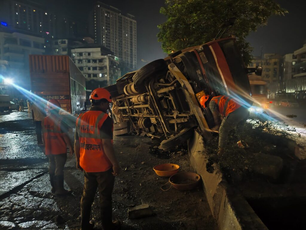 ठाणे। ठाणे के शिलफाटा इलाके में मंगलवार तड़के एक बड़ा सड़क हादसा हो गया, जब अशोक लेलैंड का एक कंटेनर अनियंत्रित होकर हाईवे पर चल रहे ट्रक से पीछे से जा टकराया। यह दुर्घटना भोलेनाथ नगर स्थित दोस्ती बिल्डिंग के सामने सुबह करीब 3:46 बजे हुई, जिसमें दोनों वाहनों के चालकों को मामूली चोटें आईं।प्राप्त जानकारी के अनुसार, कंटेनर चालक मोहम्मद मुमताज पुणे से गुजरात की ओर जा रहे थे। कंटेनर में लगभग 9 टन वजनी 7 टाटा कारें लदी हुई थीं। इसी दौरान शिलफाटा स्थित भोलेनाथ नगर में कंटेनर अचानक अनियंत्रित हो गया और आगे चल रहे ट्रक से टकरा गया।वहीं ट्रक चालक फिरोज अली भिवंडी के मनकोली से खोपोली के खलापुर की ओर 6 टन पेंट के बैरल लेकर जा रहे थे। टक्कर के बाद ट्रक में रखे पेंट के बैरल सड़क पर फैल गए, जिससे कुछ समय के लिए यातायात बाधित हो गया।घटना की सूचना मिलते ही शिल दाइघर पुलिस, यातायात पुलिस, अग्निशमन दल और आपदा प्रबंधन टीम मौके पर पहुंची। कर्मचारियों ने सड़क पर फैले पेंट पर मिट्टी डालकर फिसलन को नियंत्रित किया। बाद में क्रेन की मदद से दोनों दुर्घटनाग्रस्त वाहनों को सड़क किनारे हटाया गया, जिसके बाद यातायात धीरे-धीरे सामान्य हो सका।ठाणे आपदा प्रबंधन विभाग के अनुसार, समय रहते राहत कार्य शुरू होने के कारण कोई बड़ा हादसा टल गया, हालांकि दोनों वाहनों को नुकसान पहुंचा है।