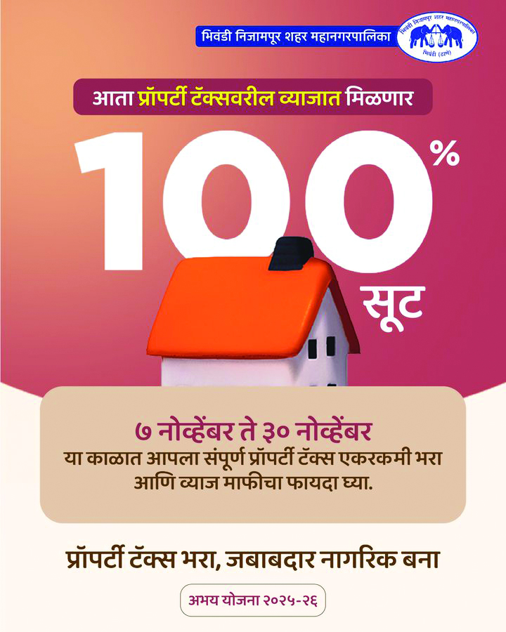 भिवंडी। अभय योजना के तहत नागरिकों को बड़ी राहत देते हुए भिवंडी निज़ामपुर नगर निगम (बीएनएमसी) ने बकाया प्रॉपर्टी टैक्स पर किस्तों में ब्याज माफी योजना की घोषणा की है। इस योजना के तहत टैक्स देने वालों को 7 नवंबर से 30 नवंबर 2025 तक ब्याज पर 100 प्रतिशत छूट, 1 दिसंबर से 31 दिसंबर 2025 तक 75 प्रतिशत छूट और 1 जनवरी से 31 मार्च 2026 तक 50 प्रतिशत छूट मिलेगी। निगम ने इस पहल के तहत 200 करोड़ रुपये की वसूली का लक्ष्य रखा है। अधिकारियों के अनुसार, कुल प्रॉपर्टी टैक्स बकाया बढ़कर लगभग 1,000 करोड़ रुपये हो गया है, जिसमें 418 करोड़ रुपये का जमा हुआ ब्याज शामिल है। प्रॉपर्टी टैक्स नगर निगम के लिए राजस्व का मुख्य स्रोत है, लेकिन हाल के वर्षों में टैक्स कलेक्शन की गति काफी धीमी हो गई है, जिससे शहरी बुनियादी ढांचे और विकास परियोजनाओं पर सीधा असर पड़ा है। कई नागरिक भविष्य की माफी योजनाओं की उम्मीद में भुगतान में देरी करते हैं, जिससे निगम की वित्तीय स्थिति कमजोर होती है और सार्वजनिक कार्य प्रभावित होते हैं। उपायुक्त (टैक्स) बालकृष्ण शिरसागर ने बताया कि ब्याज माफी योजना 7 नवंबर से लागू हो गई है और निगम ने 200 करोड़ रुपये की वसूली का लक्ष्य रखा है। उन्होंने कहा कि कुल बकाया प्रॉपर्टी टैक्स की रकम निगम के सालाना बजट के लगभग बराबर है। चालू वित्तीय वर्ष के लिए मांग 167.17 करोड़ रुपये है, जबकि पिछले वर्षों का बकाया 925 करोड़ रुपये तक पहुंच गया है, जिसमें 418 करोड़ रुपये का ब्याज शामिल है। उन्होंने कहा, “इस राहत के बावजूद, जो प्रॉपर्टी मालिक अपना बकाया पेमेंट नहीं करेंगे, उनके खिलाफ सख्त कार्रवाई की जाएगी।” पिछले सात महीनों में निगम ने मौजूदा साल के 16 करोड़ और पिछले बकाए के 13 करोड़ सहित केवल 29.96 करोड़ रुपये ही जमा किए हैं, जो बहुत कम है। टैक्स विभाग के प्रमुख सरहीद गुरु ने बताया कि 2,85,171 प्रॉपर्टी मालिकों से टैक्स वसूली के लिए शहर के पांच प्रशासनिक डिवीजनों में 80 क्लर्क तैनात किए गए हैं। बड़े डिफॉल्टरों पर निगरानी और कार्रवाई सुनिश्चित करने के लिए एक विशेष टास्क फोर्स भी बनाई गई है। निगम प्रशासन ने स्पष्ट किया है कि ब्याज माफी योजना समाप्त होने के बाद जो टैक्सदाता बकाया नहीं चुकाएंगे, उनके खिलाफ प्रॉपर्टी ज़ब्त करने और कानूनी कार्रवाई सहित कड़े कदम उठाए जाएंगे।