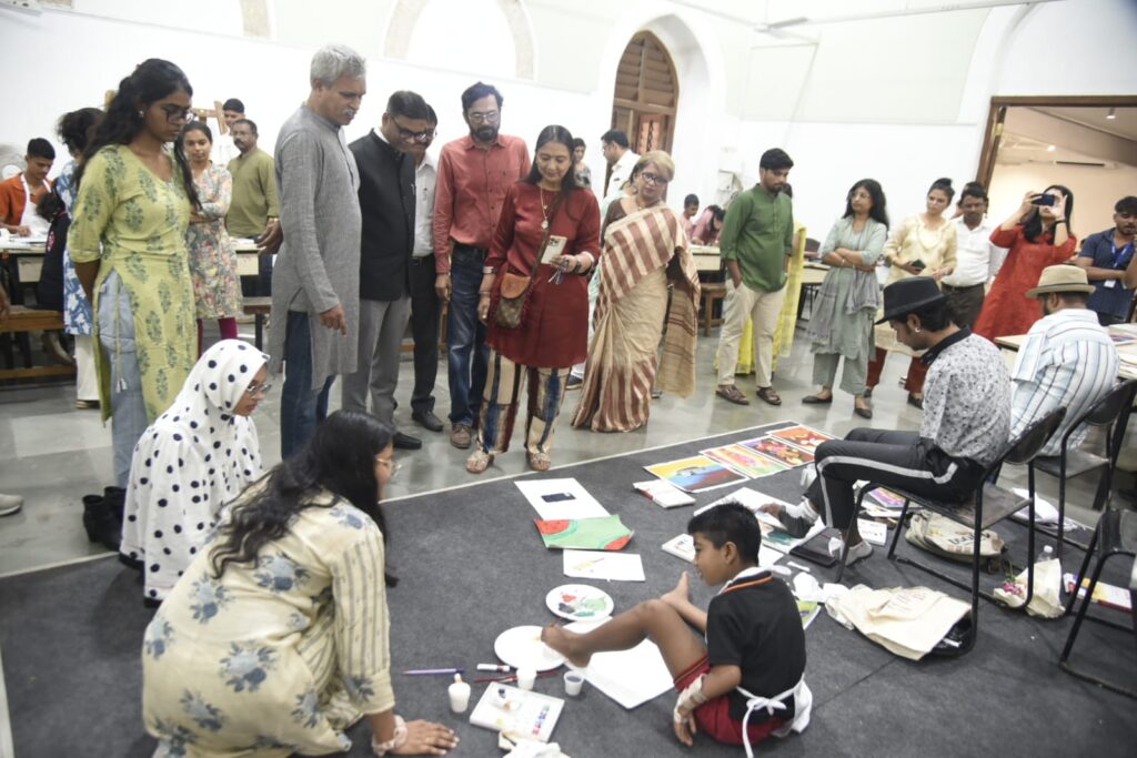 मुंबई। सर जे.जे.स्कूल ऑफ आर्ट, आर्किटेक्चर एंड डिजाइन में दिव्यांग कलाकारों के लिए आयोजित विशेष कला कार्यशाला इन दिनों चर्चा का केंद्र बनी हुई है। 6 से 8 अप्रैल 2026 तक चलने वाली इस कार्यशाला में रंगों के माध्यम से कलाकारों ने अपने सपनों, संघर्ष और आत्मविश्वास को जीवंत रूप दिया। इस कार्यशाला का आयोजन IASOWA और राष्ट्रीय बौद्धिक दिव्यांग सशक्तिकरण संस्थान के संयुक्त तत्वावधान में किया गया है, जिसमें मुंबई और आसपास की 18 से अधिक संस्थाओं के 42 दिव्यांग कलाकारों ने भाग लिया। इस पहल के पीछे IASOWA की अध्यक्ष मीनाक्षी अग्रवाल की महत्वपूर्ण भूमिका रही है। कार्यशाला की खास बात यह रही कि इसमें ऑटिज्म, डाउन सिंड्रोम, बौद्धिक दिव्यांगता, श्रवण बाधा, कम दृष्टि और पैराप्लेजिया जैसी विभिन्न चुनौतियों का सामना कर रहे कलाकारों ने अपनी सृजनात्मकता का शानदार प्रदर्शन किया। हर चित्र में उनकी मेहनत, आत्मविश्वास और खुद को साबित करने की इच्छा साफ दिखाई दी। विशेषज्ञों का मानना है कि कला दिव्यांग बच्चों के लिए केवल अभिव्यक्ति का माध्यम नहीं, बल्कि उनकी पहचान बनाने का सशक्त जरिया है। जहां शब्द कम पड़ जाते हैं, वहां रंग उनकी भावनाओं को बखूबी व्यक्त करते हैं। इस कार्यशाला का उद्देश्य कलाकारों को सृजनात्मक प्रशिक्षण, कौशल विकास, आत्मविश्वास बढ़ाने के अवसर और कला क्षेत्र में करियर की दिशा से परिचित कराना है। कार्यशाला का समापन 8 अप्रैल को चित्र प्रदर्शनी के साथ होगा, जिसका उद्घाटन दोपहर 3 बजे मुख्य सभागार में किया जाएगा। यह प्रदर्शनी 8 से 10 अप्रैल तक आम जनता के लिए सुबह 10 बजे से शाम 5 बजे तक खुली रहेगी। दिव्यांग कलाकारों ने अपनी कला से यह साबित कर दिया कि सीमाएं केवल शरीर तक सीमित होती हैं, जबकि सपनों और सृजनात्मकता की कोई सीमा नहीं होती।