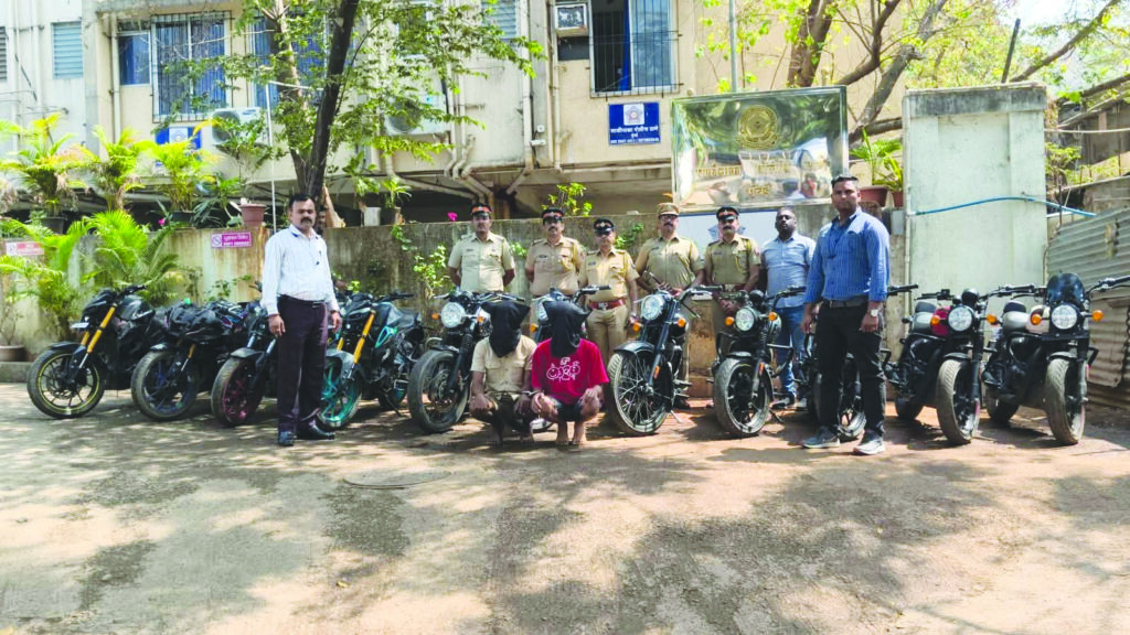 मुंबई। मुंबई पुलिस के जोन 10 ने वाहन चोरी के खिलाफ बड़ी सफलता हासिल करते हुए शातिर बाइक चोर गिरोह का पर्दाफाश किया है। डीसीपी दत्ता नलावडे के मार्गदर्शन और साकीनाका पुलिस थाने के वरिष्ठ पुलिस निरीक्षक सुनील यादव के नेतृत्व में पुलिस टीम ने दो आरोपियों को गिरफ्तार किया है और उनके पास से चोरी की 11 कीमती स्पोर्ट्स एवं हाई-एंड मोटरसाइकिलें बरामद की हैं, जिनकी कुल कीमत 23,89,000 रुपये आंकी गई है। मामले की शुरुआत 22 नवंबर 2025 को हुई थी, जब साकीनाका इलाके से रॉयल एनफील्ड इंटरसेप्टर 650 चोरी हो गई थी। तकनीकी जांच और गुप्त सूचनाओं के आधार पर पुलिस ने जाल बिछाया और सबसे पहले आरोपी मिराज उर्फ बयाल मोहम्मद रईस खान (26) को ठाणे के दहिसर मोरी इलाके से हिरासत में लिया। उसकी निशानदेही पर दूसरे आरोपी उमेर आमीन शेख (20) को राजस्थान के अजमेर से गिरफ्तार किया गया। जांच में सामने आया कि मुख्य आरोपी मिराज मूल रूप से संतकबीर नगर (उत्तर प्रदेश) का निवासी है और दोनों आरोपी मुंबई व उपनगरों से महंगी मोटरसाइकिलें चुराकर उन्हें बेचने का धंधा करते थे। इनके पकड़े जाने से साकीनाका, डी.बी. मार्ग, कुर्ला, सायन और धारावी पुलिस थानों में दर्ज 15 मामलों का खुलासा हुआ है। पुलिस ने आरोपियों के पास से रॉयल एनफील्ड हंटर 350 की 4, रॉयल एनफील्ड बुलेट 350 की 2, यामाहा एमटी-15 की 3 और यामाहा आर15 की 1 मोटरसाइकिल सहित कुल 11 वाहन जब्त किए हैं। इस सफल कार्रवाई में साकीनाका पुलिस के अधिकारी नितिन पाटिल, प्रवीण शिरसाट, राजेंद्र नांगरे और उनकी टीम की महत्वपूर्ण भूमिका रही, जिसकी वरिष्ठ अधिकारियों ने सराहना की है।